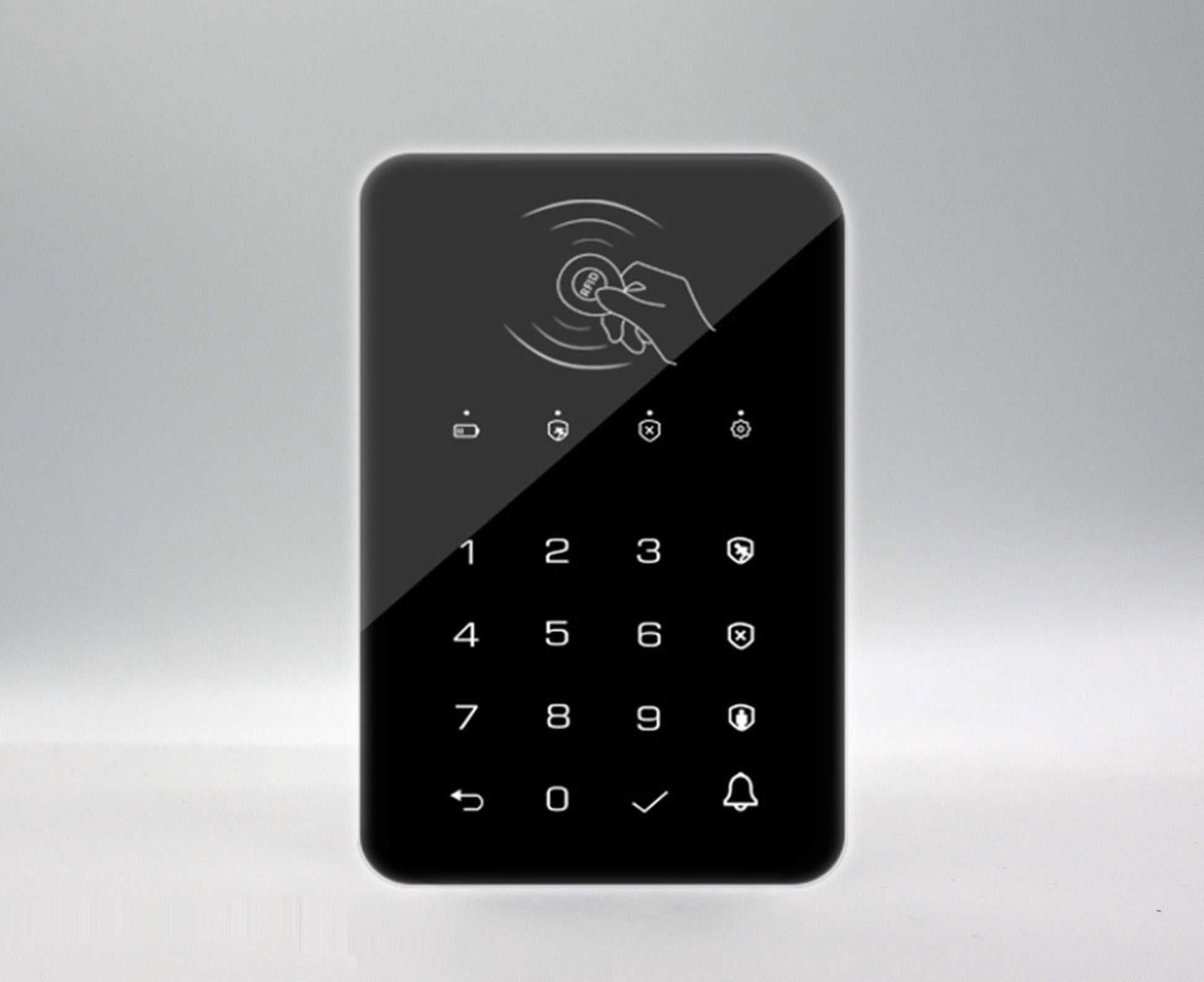 The keyboard can be installed at the entrance by entering a password or using RFID tags; users can easily use the keyboard to perform functions such as arming away, disarming, arming home, etc.
